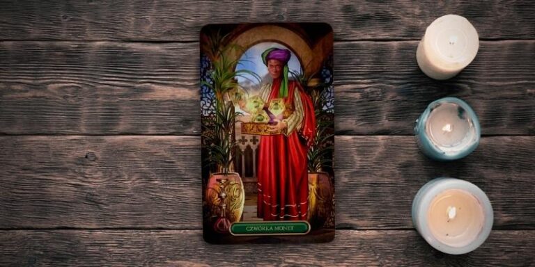 Czwórka Monet w Tarocie jest sześćdziesiątą ósmą kartą i wchodzi w grupę Arkan Małych. To karta stagnacji, spokoju, zatrzymania. To przywiązanie do rutyny i przewidywalności.