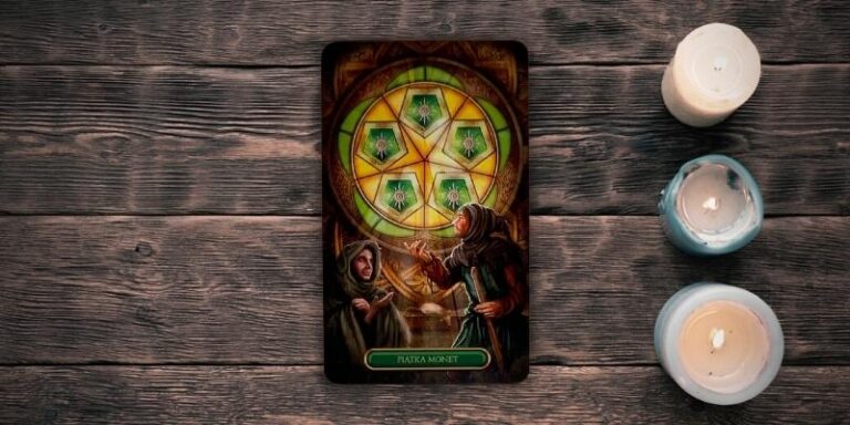 Piątka Monet w Tarocie jest sześćdziesiątą dziewiątą kartą i wchodzi w grupę Arkan Małych. Przesłanie tej karty skupia się na braku. Braki w różnych postaciach,